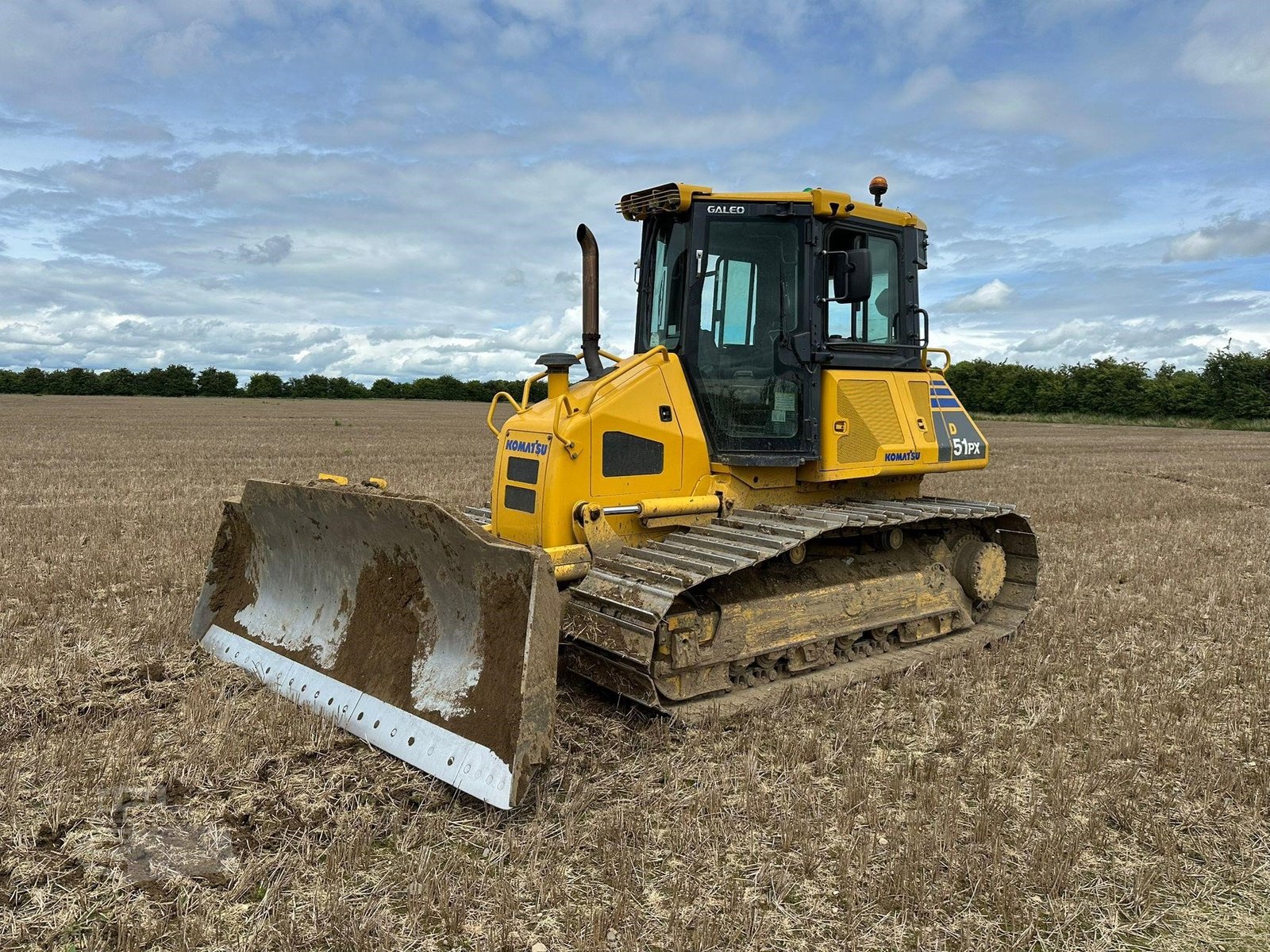 Avec un poids d’environ 13 tonnes, le Komatsu D51PX-22 assure une excellente stabilité et une bonne capacité de traction sur différents types de terrains. Il est équipé d’une lame PAT à 6 voies, permettant un contrôle précis des opérations de nivellement et une grande flexibilité dans les travaux. Cette configuration facilite les ajustements rapides et améliore la productivité sur chantier.