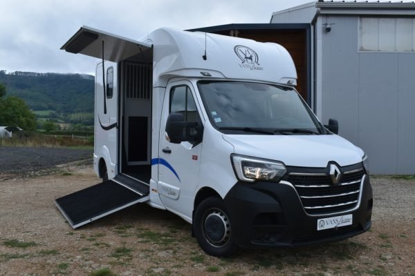 Le camion pour chevaux Renault Master avec carrosserie Vans Laissac est une solution fiable et performante, idéale pour le transport équin en toute sécurité. Mis en circulation en mars 2022, ce véhicule affiche un faible kilométrage de 59 100 km et bénéficie d’un carnet d’entretien complet, garantissant un suivi rigoureux et un excellent état général.