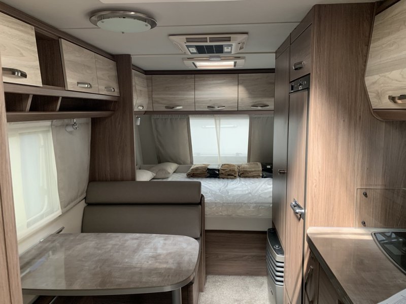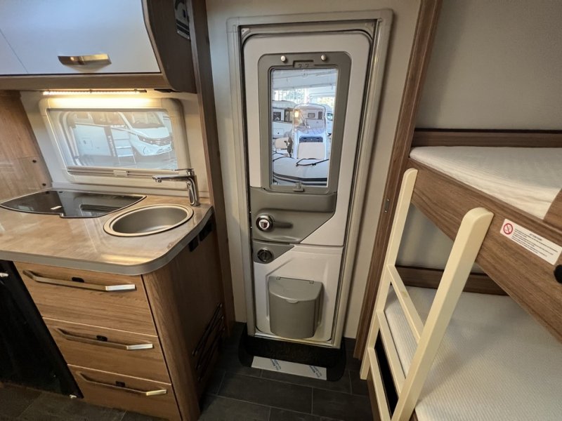 L’espace intérieur est conçu pour offrir une circulation fluide et un usage pratique au quotidien, avec des zones bien définies pour le repos, les repas et le rangement. L’ensemble des équipements et des finitions reflète le savoir-faire de Tabbert, avec une attention particulière portée au confort et à la durabilité.