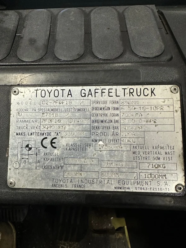 Le chariot élévateur TOYOTA 02-7FDFF18 2006 est un équipement d’occasion fiable et robuste, idéal pour les opérations de manutention industrielle et logistique. Avec 4350 heures d’utilisation, il reste en bon état de fonctionnement et prêt à optimiser vos flux de travail sur site.