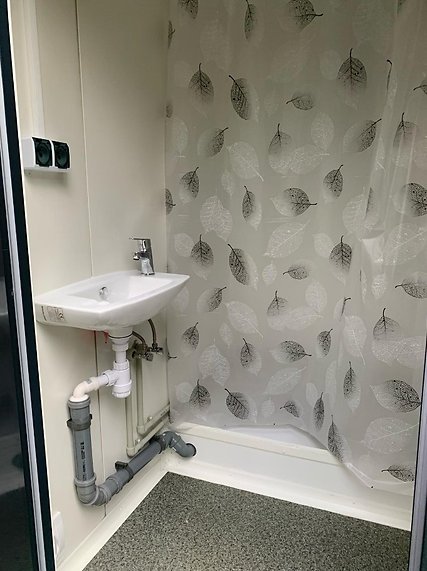 L’ensemble est équipé d’installations complètes permettant une utilisation immédiate. Il comprend des WC modernes, des lavabos fonctionnels, un urinoir intégré ainsi qu’une douche entièrement équipée, offrant un niveau de confort supérieur pour les utilisateurs. Le chauffe-eau instantané assure une production continue d’eau chaude, répondant aux besoins quotidiens sans interruption.