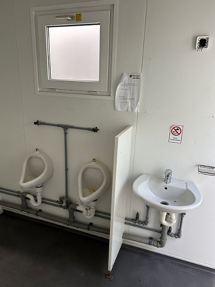Avec une superficie de 14,79 m², ce conteneur propose un aménagement intérieur bien structuré comprenant deux cabines de douche, deux WC, deux urinoirs et cinq lavabos, permettant une utilisation simultanée par plusieurs personnes. Cette configuration en fait une solution particulièrement adaptée aux sites nécessitant des installations sanitaires performantes et accessibles en continu.