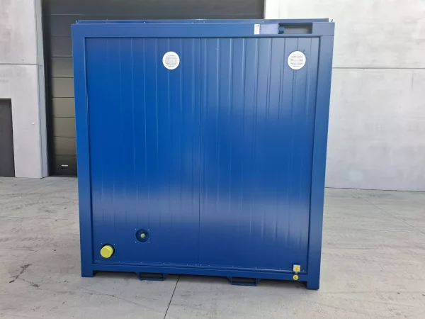 Le conteneur est équipé de deux fenêtres standard permettant une bonne luminosité naturelle et une ventilation complémentaire. La porte extérieure en acier galvanisé isolée, munie d’une serrure à cylindre, assure sécurité et résistance à une utilisation intensive. L’installation électrique est conforme aux normes CEE, avec des raccordements extérieurs en 400V et 240V, des prises de courant et un éclairage intégré, garantissant une mise en service rapide et sécurisée.